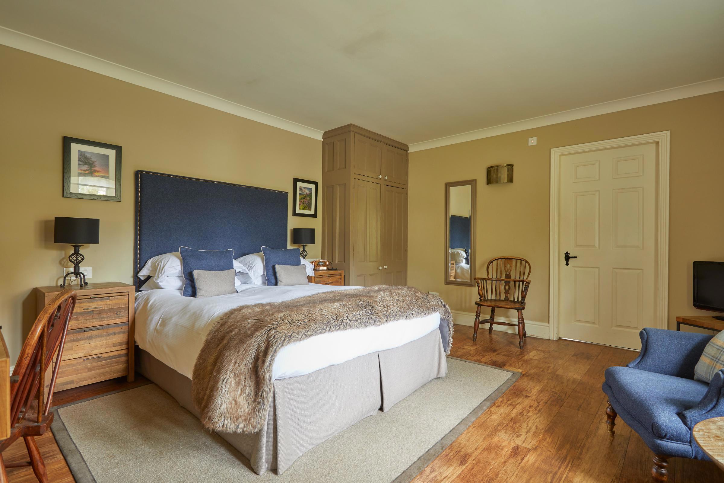 These ground floor rooms are set back along the driveway and have private parking immediately outside the room. They have clean, fresh décor with wool fabrics and bathrooms have either shower over bath or a large walk-in shower only. These rooms can be booked as a pair (double and twin) as there is a private and secure lobby between the two rooms making them ideal family units. We accept up to two dogs in these rooms. Typical size: 22m²